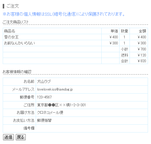 確認画面が出ます。最後にちゃんと確認して送信して下さい。![]() |